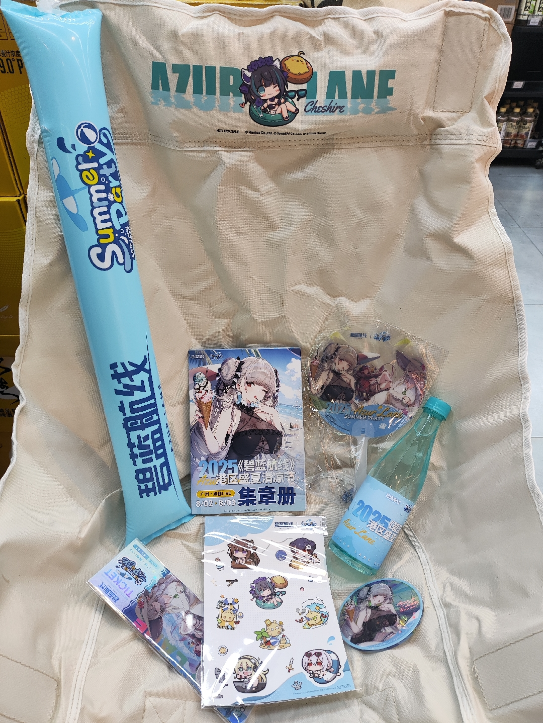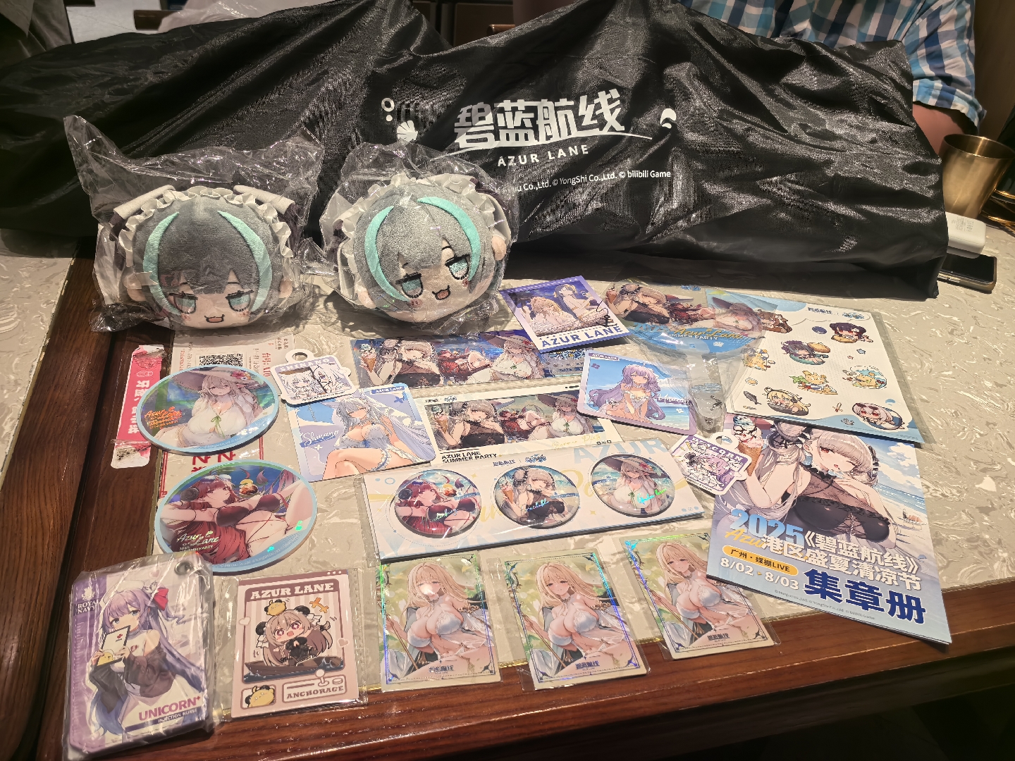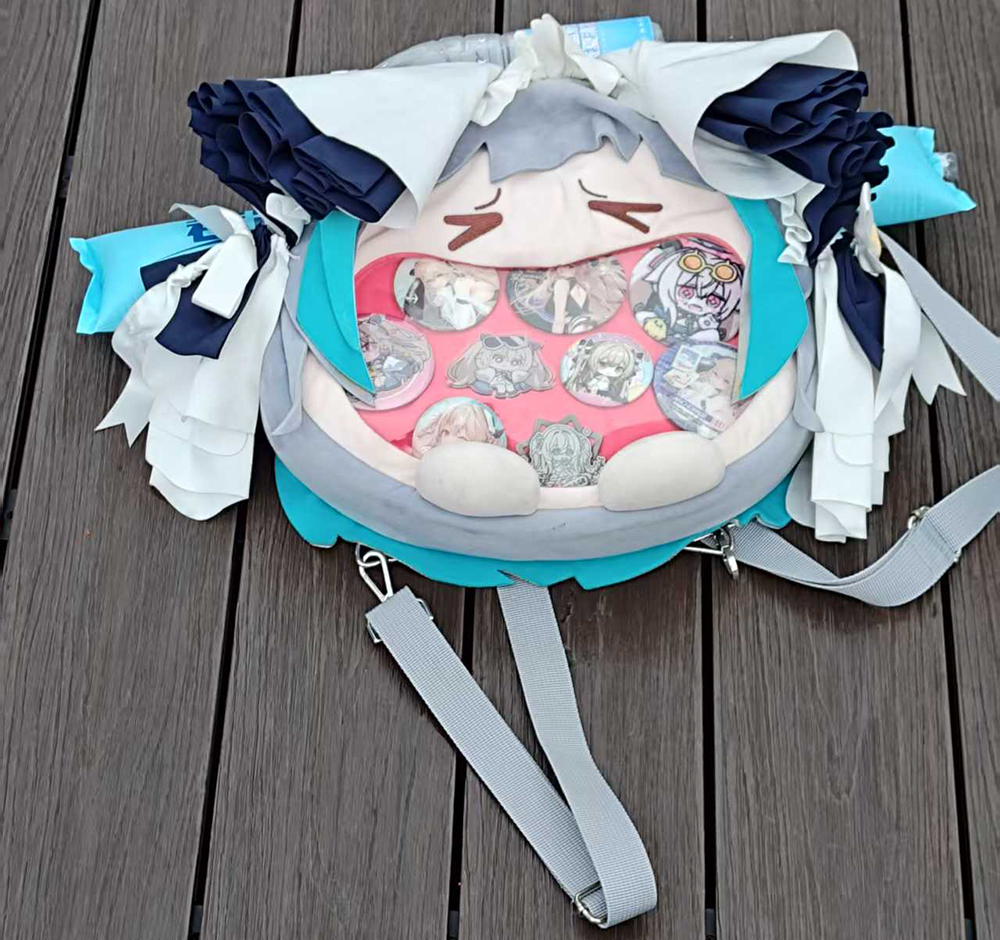 在现场抓拍到一位资深玩家的柴郡包包,还带了一堆碧蓝航线角色徽章