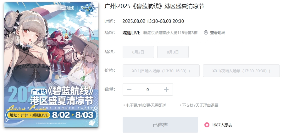 值得一提的是,今年清凉节广州站入场资格的获取采取了预约制而非贩售制,就是玩家入场并不需要购买门票,而是通过限时开放的预约页面获取资格,两天的入场资格在开放预约后不到5分钟就全部告罄。