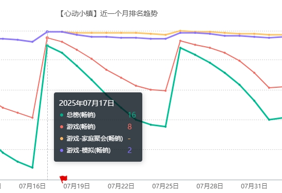 《心动小镇》是一款以慢节奏生活模拟为核心的3D社交建造手游,主打自由建造、田园生活与轻松社交,玩家可以在一个童话风格的欧式小镇中打造个性化家园,体验“慢节奏、无压力”的休闲生活。上个月推出一周年庆典及小马宝莉联动版本后,《心动小镇》曾一度跃升至国内iOS畅销榜TOP8。截至目前,游戏仍然能够保持在畅销榜60名左右,长线表现相当稳定。