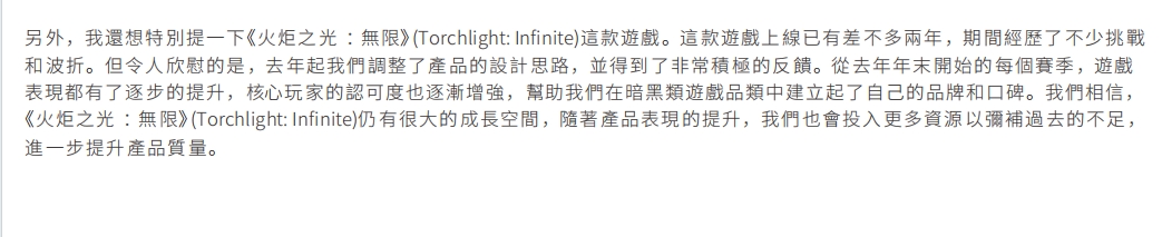 前段时间,黄一孟也曾经在每年例行的致股东信中提到这款过产品,表示“从去年年末开始的每个赛季,游戏表现都有了逐步的提升,帮助我们在「暗黑like」品类中建立起了自己的品牌与口碑”。能够看出,心动对《火炬之光:无限》未来的增长潜力依旧持乐观态度。