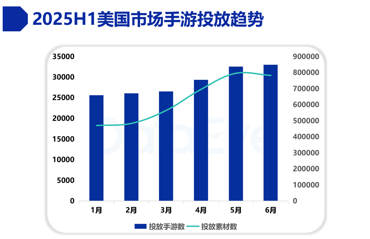 (今年美国市场投放数明显上涨,图源:DataEye游戏观察)