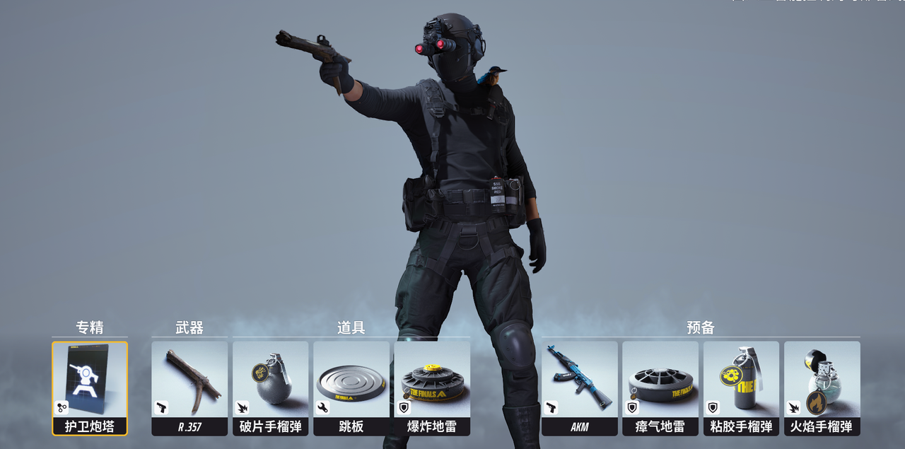 瘦子角色强调功能性,拥有建筑炮台的能力,如果合理搭配上地雷的使用,就可以极大地强化队伍的守点能力。同时瘦子还有跳板、回血枪、起搏器等重要道具,常常可以在战局中发挥决定性作用,比如跳板可以带整个队伍快速到达建筑顶端实现高打低优势,起搏器则可以瞬间将死去的队友复活。瘦子在团队中扮演着关键的辅助角色,可以类比成《守望先锋》中的支援角色,如安娜、天使等。