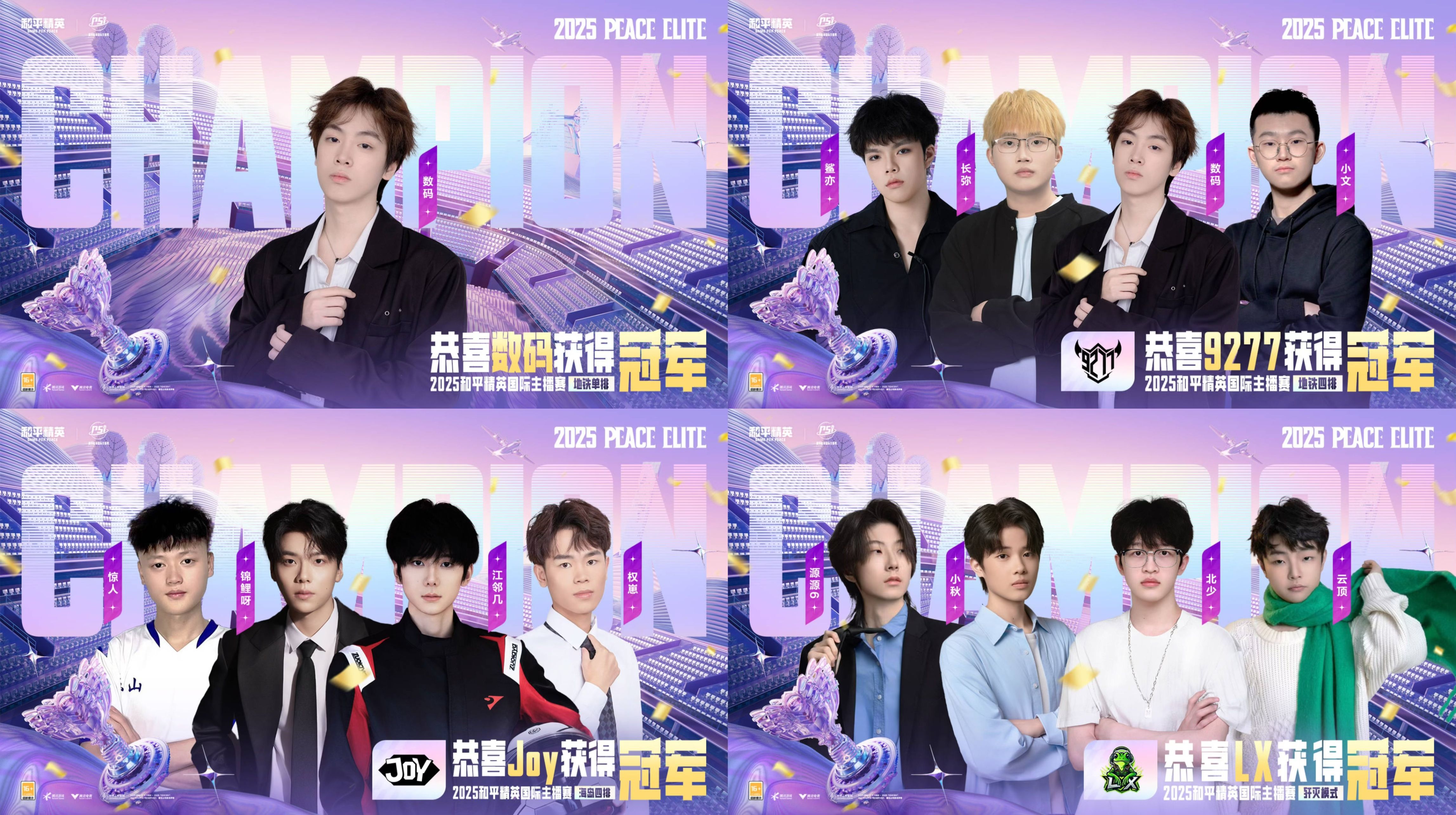 另外,2025和平精英国际主播赛总决赛也在三亚白鹭体育场圆满收官。在两天的决赛赛程里,Lx战队、数码选手、9277战队、Joy战队分别在歼灭、地铁逃生单排、地铁逃生四排、经典海岛四项赛事中成功夺得冠军。