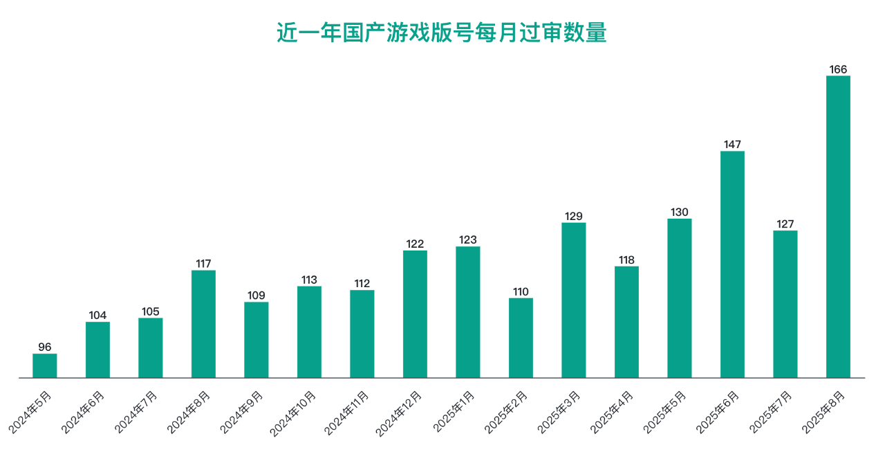 截至今年8月,年内已下发的国产游戏版号共计1050个。值得一提的是,如果从近一年的每月版号下发数量来看,可以发现版号的过审数量在阶段性增长,并在这个月创下了新高。