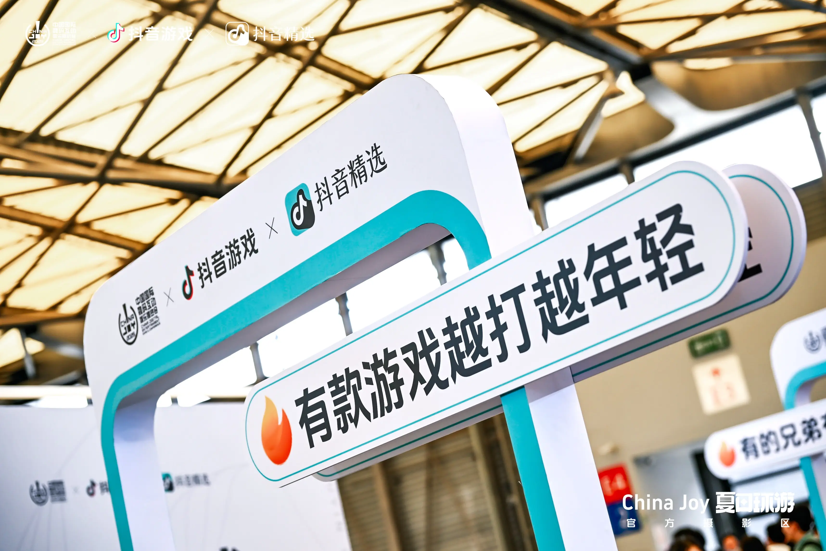 今年的ChinaJoy,抖音游戏作为重要行业伙伴深度参与,并联合打造了首个“官方摄影区”。这不仅是抖音游戏「夏日环游记」内容场景的延伸,更是线上线下的融合枢纽。CJ现场围绕游戏梗文化“有款游戏越打越年轻”、“染上第五人格了”、“有的兄弟有的”等打造游戏主题场景。利用游戏视觉及梗点记忆,激发到场玩家自发打卡分享,在站内形成多个热点话题,持续吸引大批游戏头部作者和颜值达人前往官方摄影区拍摄视频,相关话题总播放量达7亿。优质爆款内容持续反哺平台内容生态,显著提升了抖音游戏的品牌影响力。
