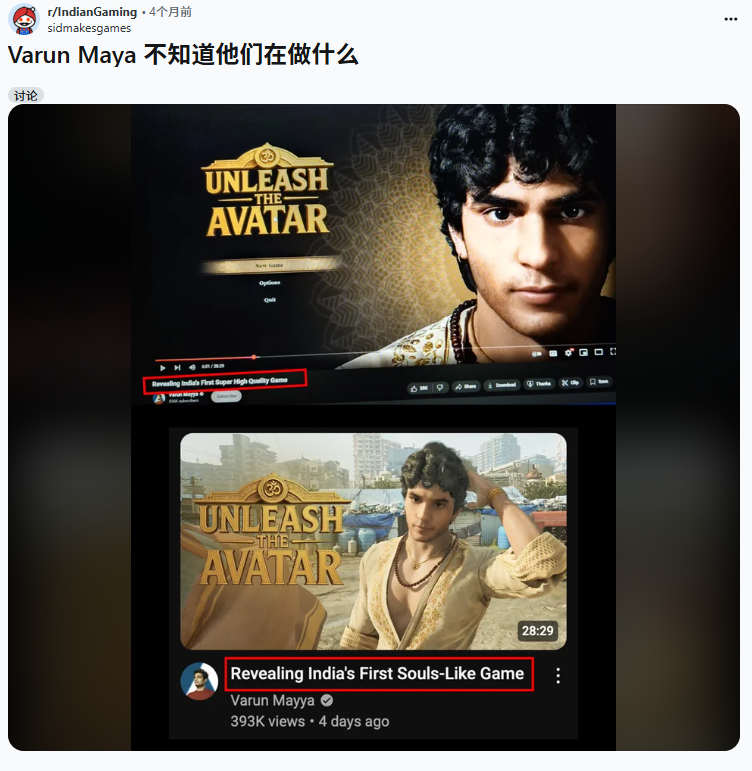 乍看之下,Mayya的团队似乎让这款3A游戏的开发井然有序地进行着。但事实上,实机演示PV在油管上发布不久后,Reddit就有网友曝出PV的标题发生过多次修改,从“印度首款超高品质游戏”,到“印度首款类魂游戏”,再到最后的“来自印度的写实游戏”。