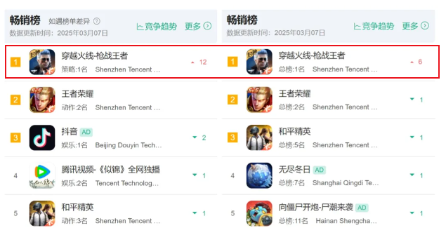 早在2025开年之初,CF手游就长时间稳居各大应用商店畅销榜前三,成为了“春节档”的赢家之一;3月新版本“弦起惊虹”上线后,游戏先是成功在国内ios畅销总榜与游戏榜双双登顶,随后在腾讯发布的Q1财报中也被明确提及“流水创下历史新高”,为自己今年的生猛表现定下了基调。