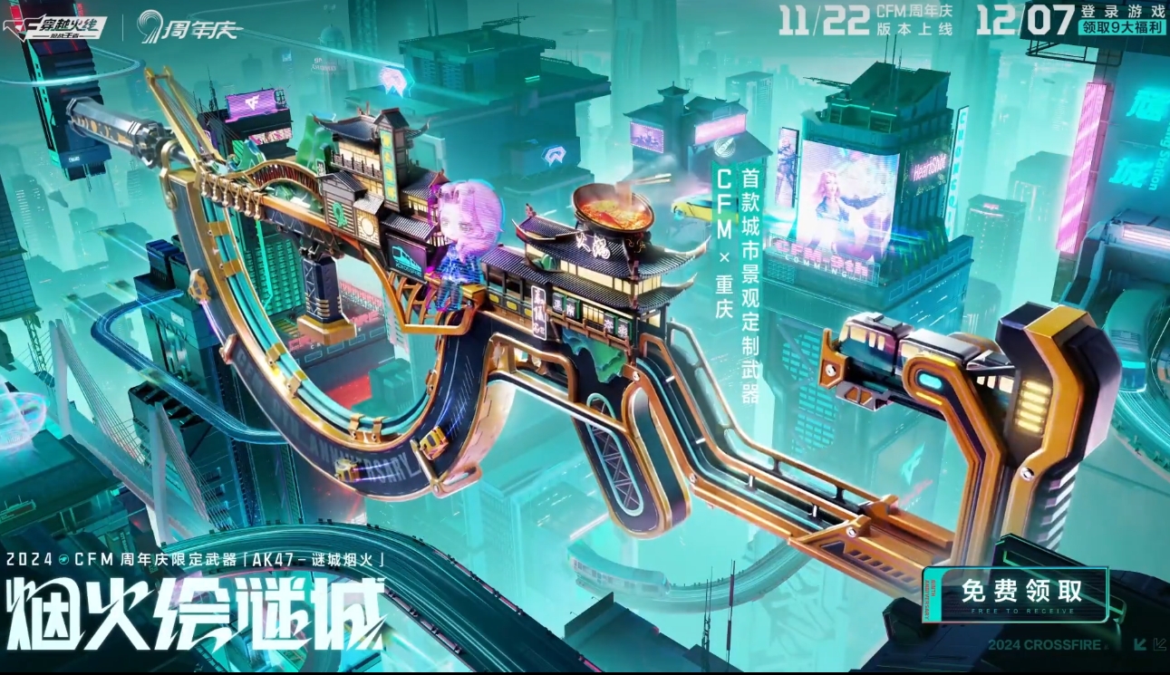 在携手新华网发起的“谜城巡百城”企划中,CF手游先后将河南、陕西等地区的特色传统文化与游戏进行结合,在九周年庆之际,更是将山城重庆的风土人情融入到枪械中,推出了专属首款城市景观定制武器“AK47-谜城烟火”,并且将其免费赠送给玩家。