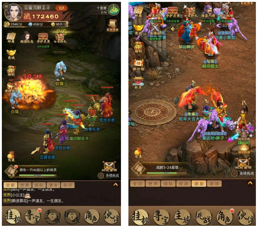 游戏前期主打挂机和挖宝两个核心玩法,反馈节奏紧凑,源源不断地为玩家提供惊喜感和日常产出;后期则引入了类似《问道》的多人组队社交机制,如合作杀星等,增强玩家之间的互动。