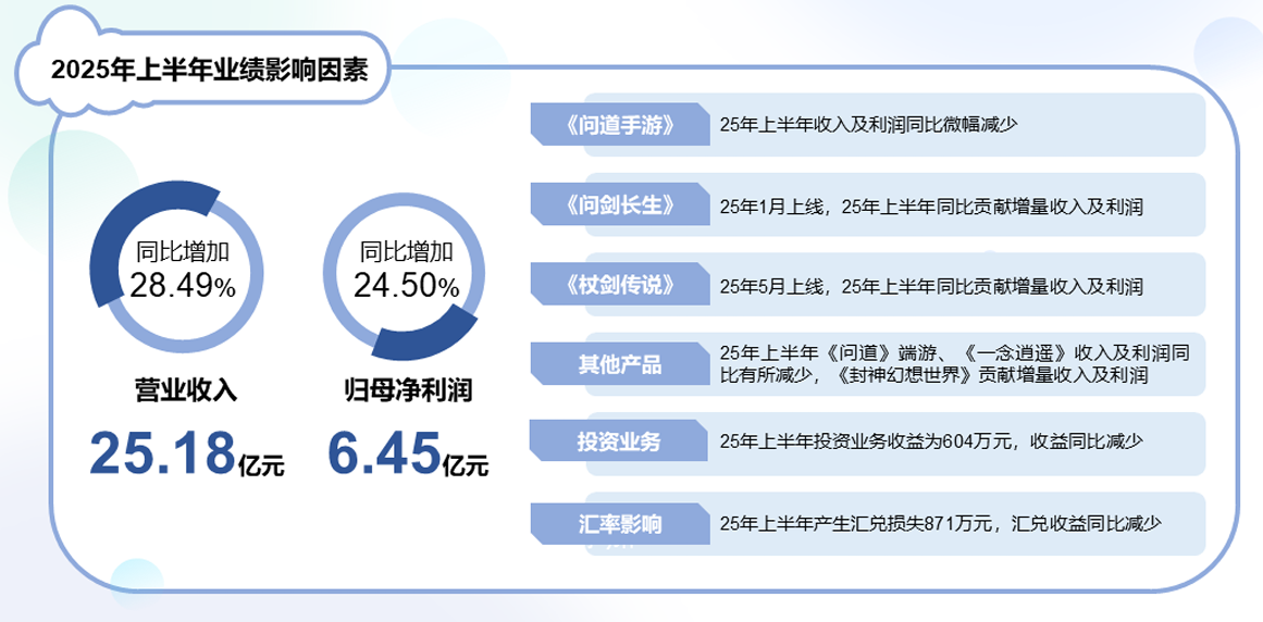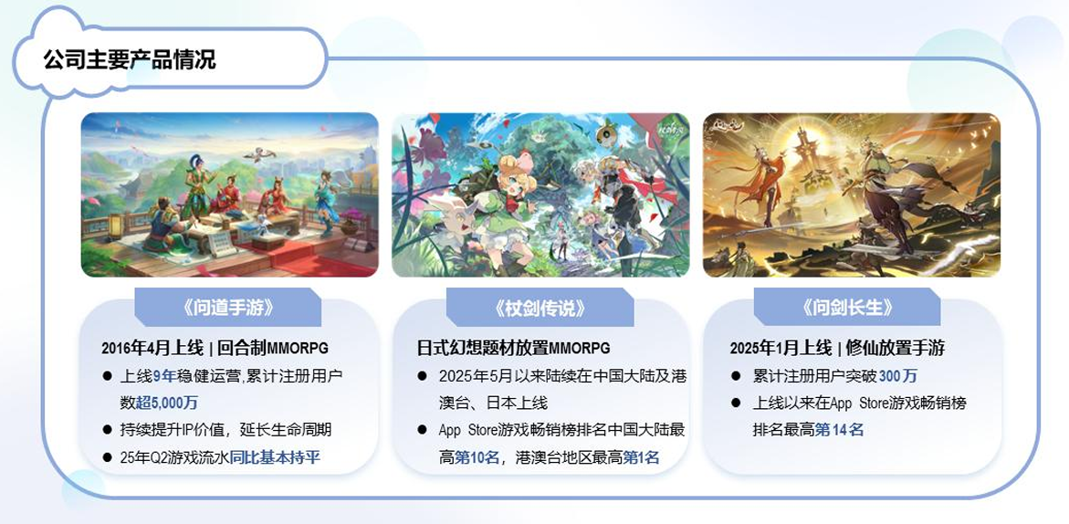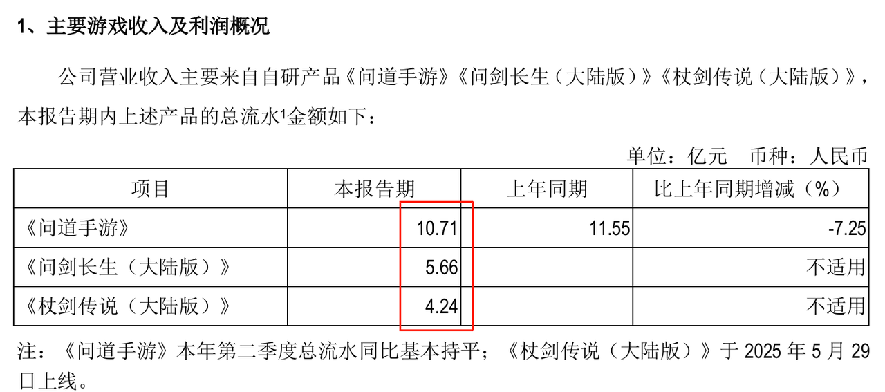 林佳金:2025年上半年,《问道》端游整体来说还是偏平稳的状态。这次半年报没有披露流水情况,是因为当期这款游戏的占比不太高了,为了凸显重要性,只披露了几个重点产品。