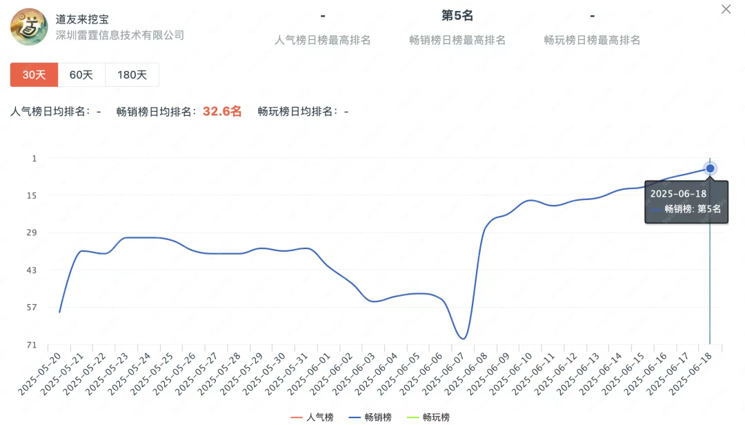 在持续深耕手游领域的同时,为顺应当前市场趋势,吉比特也在积极拓展小游戏赛道。今年5月,公司上线了基于“问道”IP开发的回合制RPG小游戏《道友来挖宝》,市场反响不俗,6月便进入微信小游戏畅销榜Top10并持续至今。