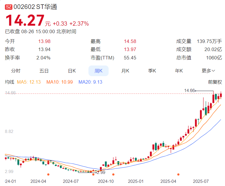 其中最为夸张的,当属涨幅高达336.39%的世纪华通——这甚至还是他们从去年11月起顶着「ST」帽子,单日最高涨跌幅都被限制在5%以内的前提下打出来的成绩。