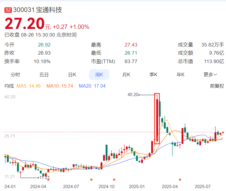 出海厂商易幻网络(Efun)的母公司宝通科技,则是搭上了“人形机器人”概念的快车:今年2月25日,宝通科技曾在公告中披露公司和国内头部机器人企业宇树科技的合作计划,并表示双方正“探讨机器人在工业场景的应用落地”。随后两个交易日里,宝通科技股价连续录得20.07%与17.32%的大幅上涨,直接出现了“一字型”的涨停。