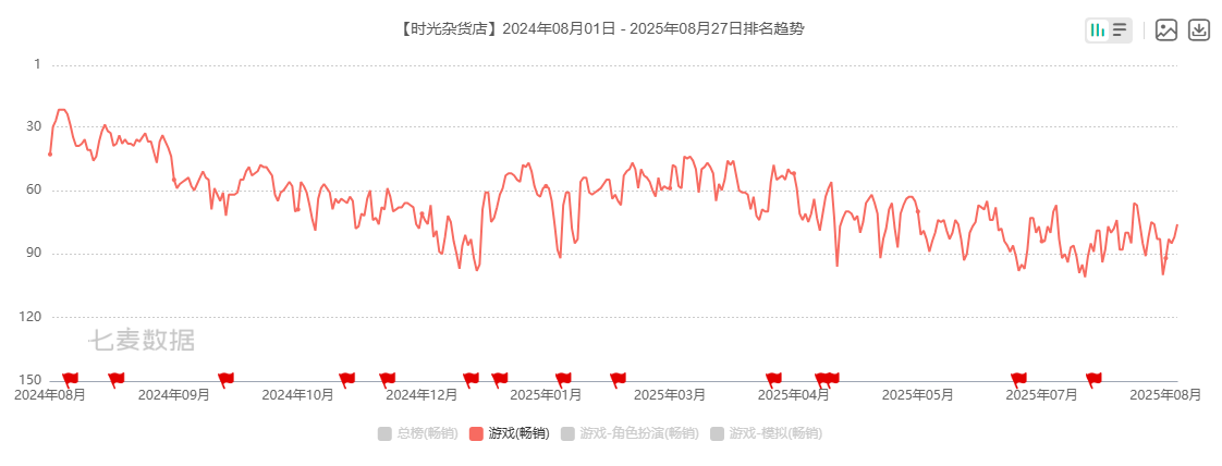 (《时光杂货店》上线以来的iOS游戏畅销排名)