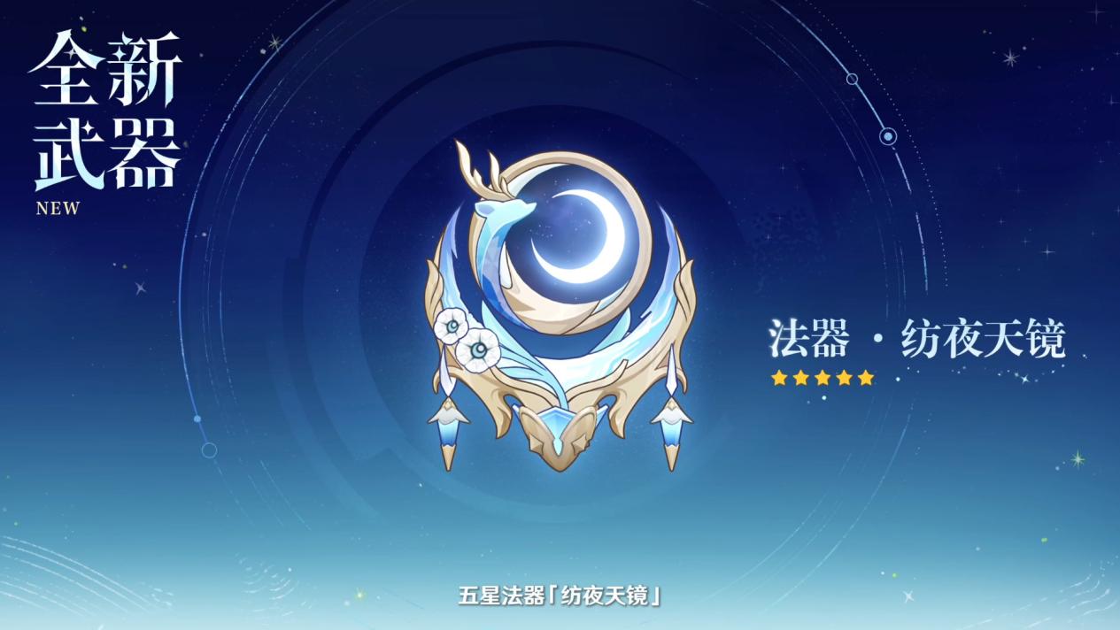 除了新角色之外,全新限定五星法器「纺夜天镜」和全新五星长柄武器「血染荒城」,以及两套新圣遗物「穹境示现之夜」与「纺月的夜歌」也将在「月之一」版本与各位玩家见面。