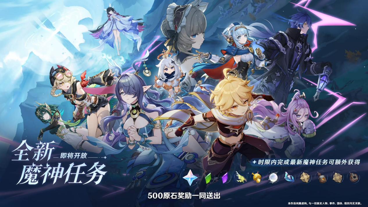 除此之外,「空月之歌·呈示」魔神任务第一幕「雪浪与苍林之舞」将在新版本开放。对应的角色培养材料和原石奖励,将跟随完成魔神任务后的500原石奖励一同发放。