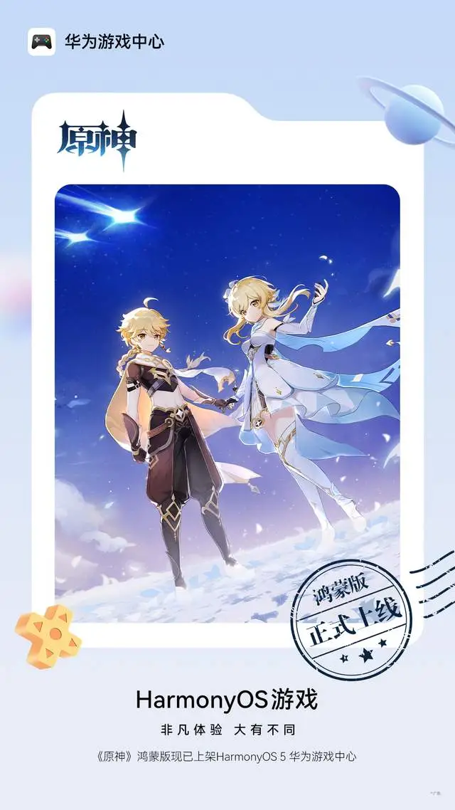 9月10日,《原神》正式支持HarmonyOS 5及以上系统的鸿蒙设备,上架HarmonyOS 5华为游戏中心,使用鸿蒙5设备的玩家可随时踏入提瓦特大陆,延续冒险,感受沉浸式的开放世界旅程!
