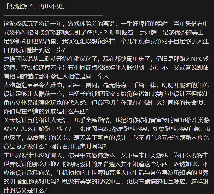 但在种种原因的作用下,这对于玩家来说可能不是一件好事,这么做之后反倒更进一步加重了玩家对制作组准备跑路的猜疑。