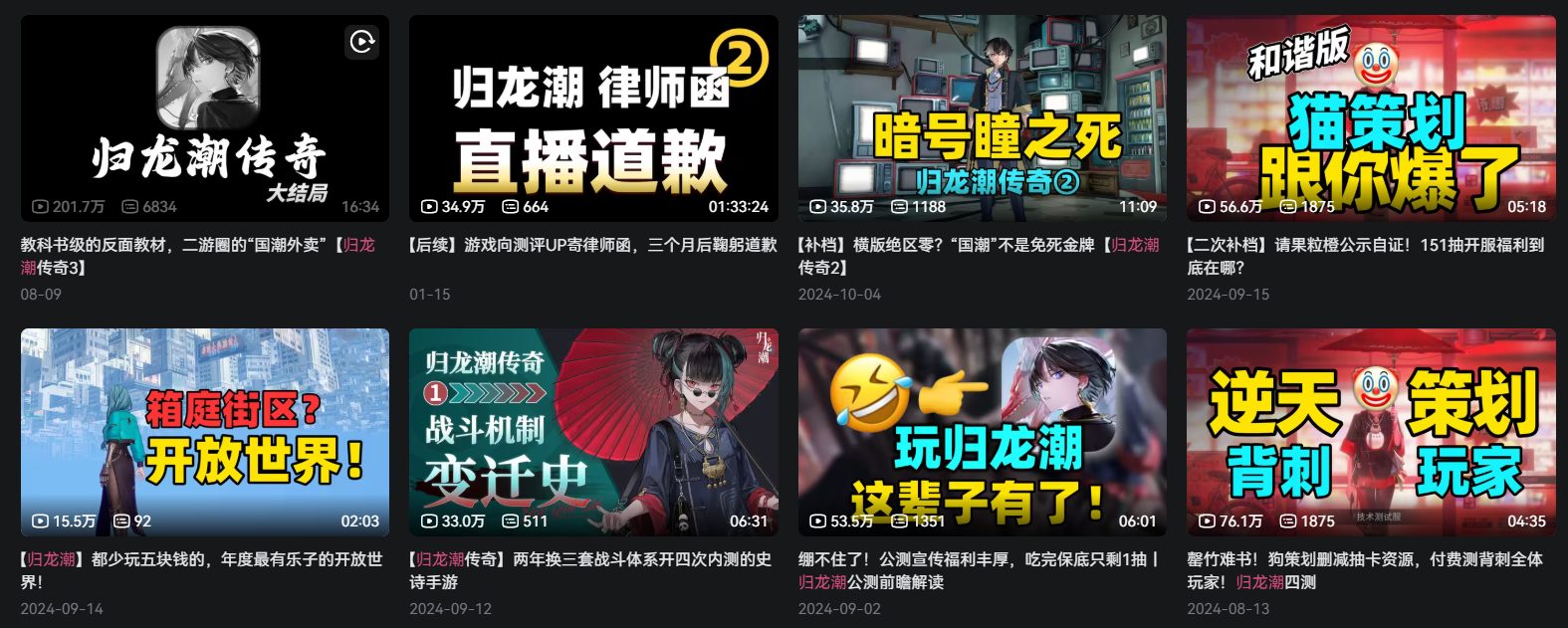 而因为此事,这位up主在这期间收到过律师函,后续的结果也是以《归龙潮》方道歉收场,在这次事件当中,双方拉锯持续了相当长一段时间,可以说因为这件事,《归龙潮》所面临的舆论环境一步步走向了恶化,对游戏的拉新以及持续运营都造成了相当大的影响。