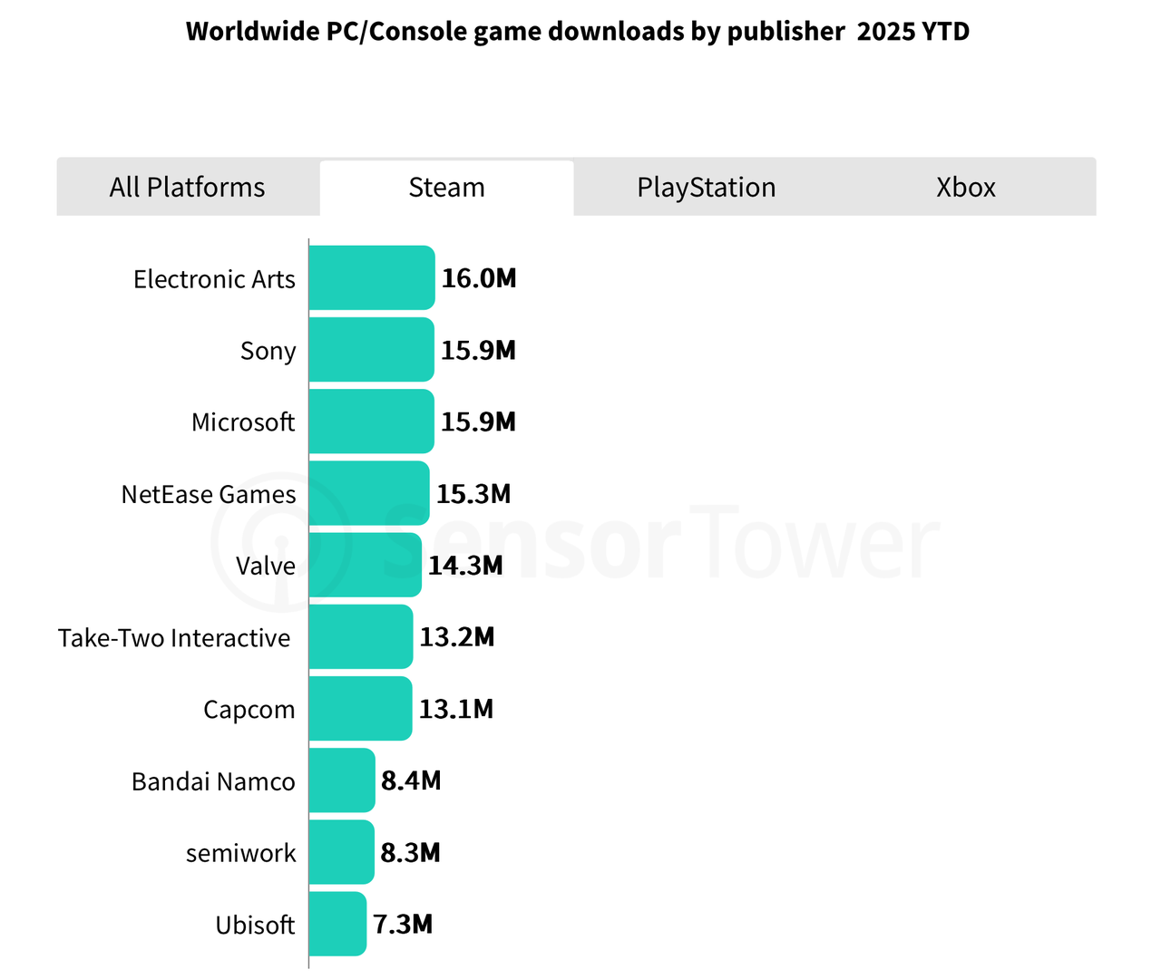 (全球PC/主机游戏发行商下载量排名,左右滑动查看)