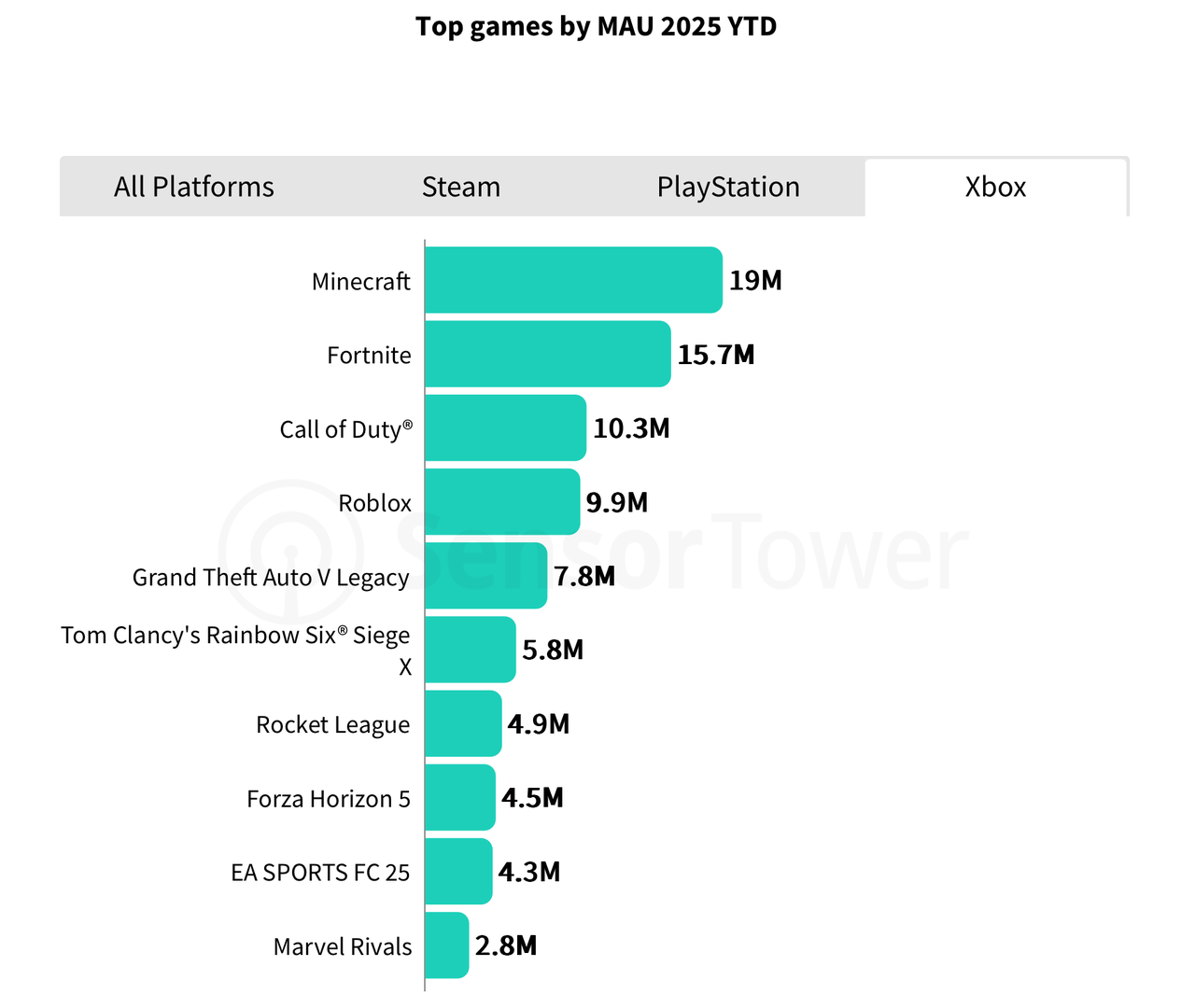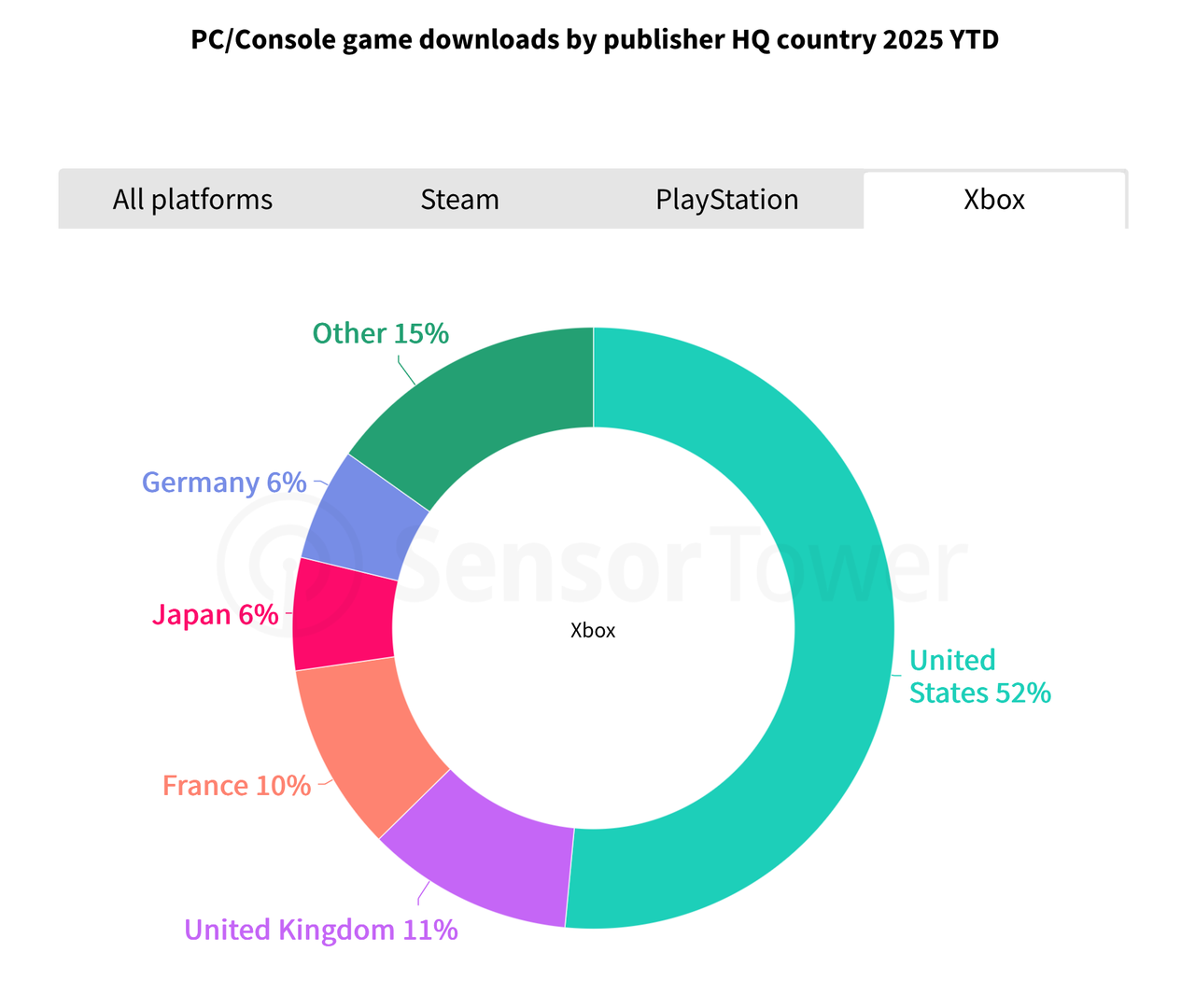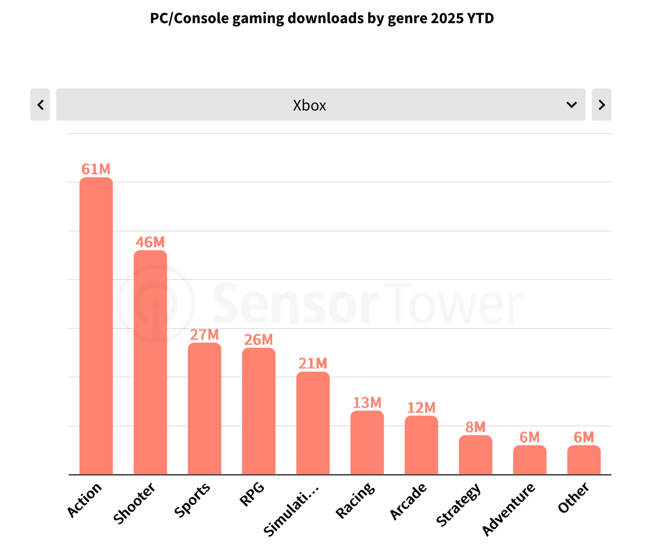 虽然排名第二,但PlayStation平台的表现依旧强劲,下载量达到了3.76亿。这体现了其作为主机领域领导者的地位,以及强大的国际市场渗透率;而Xbox尽管总下载量落后,但凭借Game Pass和跨平台兼容性,仍保持着可观的市场份额。