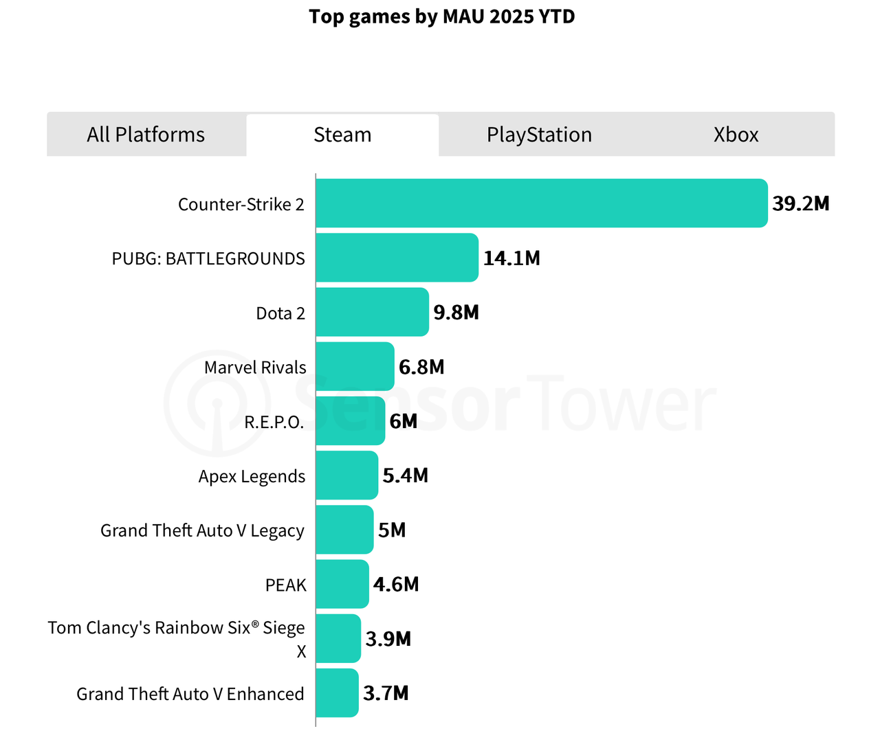 (PC/主机游戏月活跃用户榜,左右滑动查看)