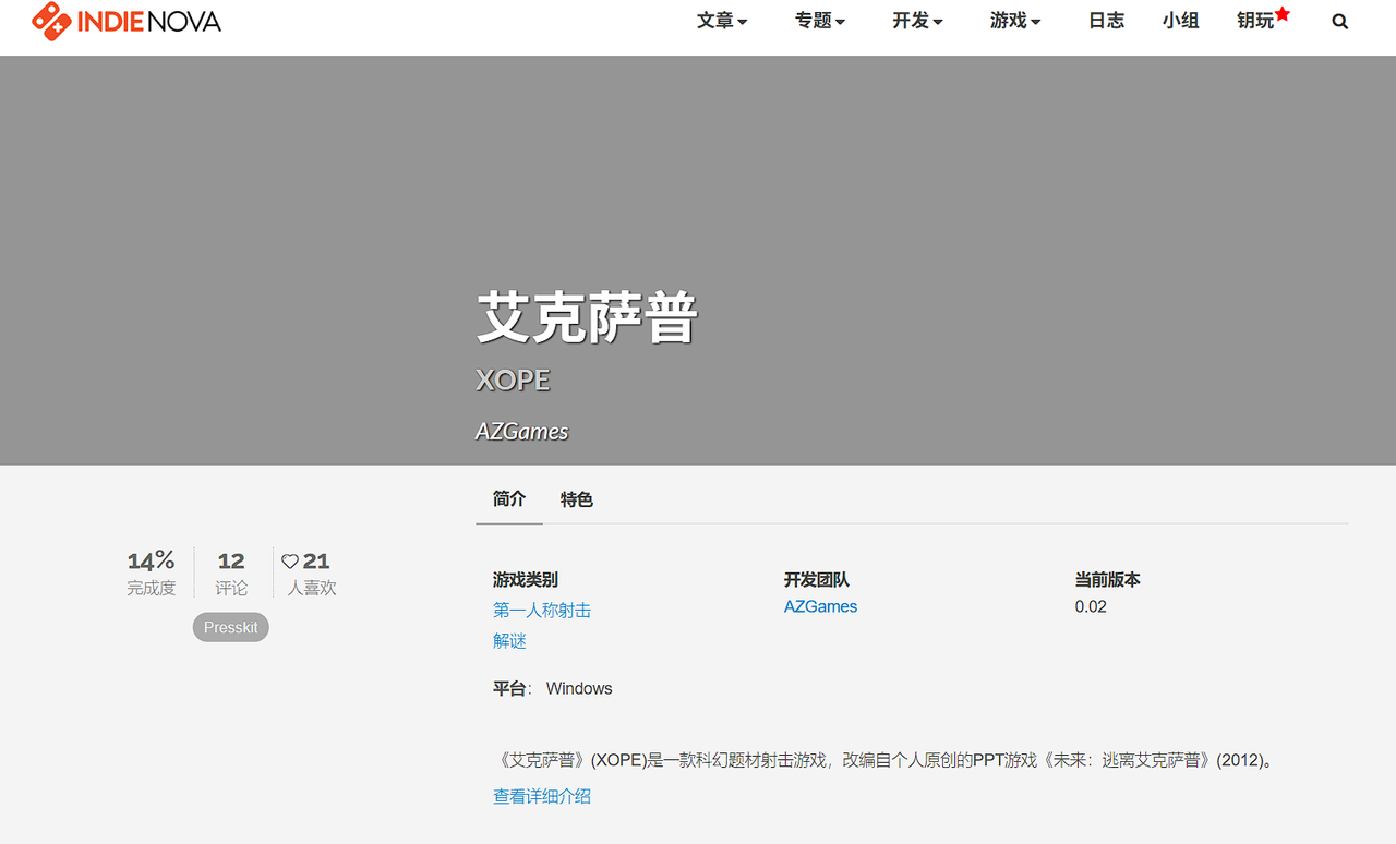 时间一跃六年,AZGames成立,宣布正在制作一款太空题材射击游戏《XOPE》,故事的背景正是《未来逃离艾克萨普》中主角艾伯特所前往的星球。
