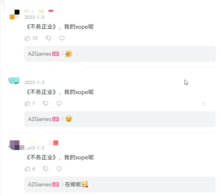 《全速以赴》在中途变成了重点项目,在B站官号上,《XOPE》的消息越来越少,甚至可以说已经难产,它却不断发布新的内容,或许年内就能发售,这让玩家们都不禁吐槽AZGames“不务正业”。