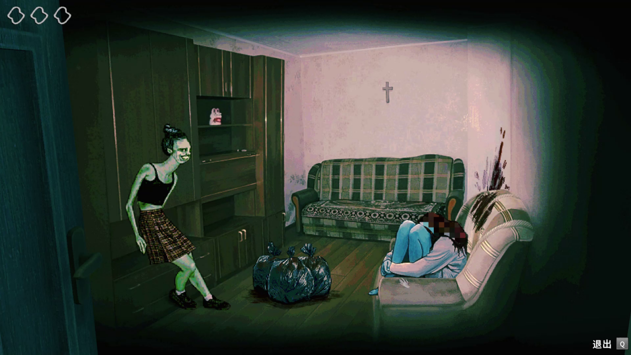 不仅如此,《寻找伪人》还将玩家的主要活动空间限制在一个仅有十几平米的屋内。通过狭小的面积以及寥寥无几的家具陈设,从物理层面直观地构建了一种束缚感。所有的焦虑、恐惧和偏执都在这个浓缩的空间内不断发酵、膨胀,极大地强化了“幽闭恐惧症”般的体验。