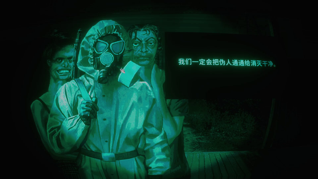 最重要的信息渠道是老式电视机的新闻播报和需要手动调频的收音机。它们扮演着“游戏说明书”的角色,会持续向幸存者公众播报关于“伪人”的最新识别特征。