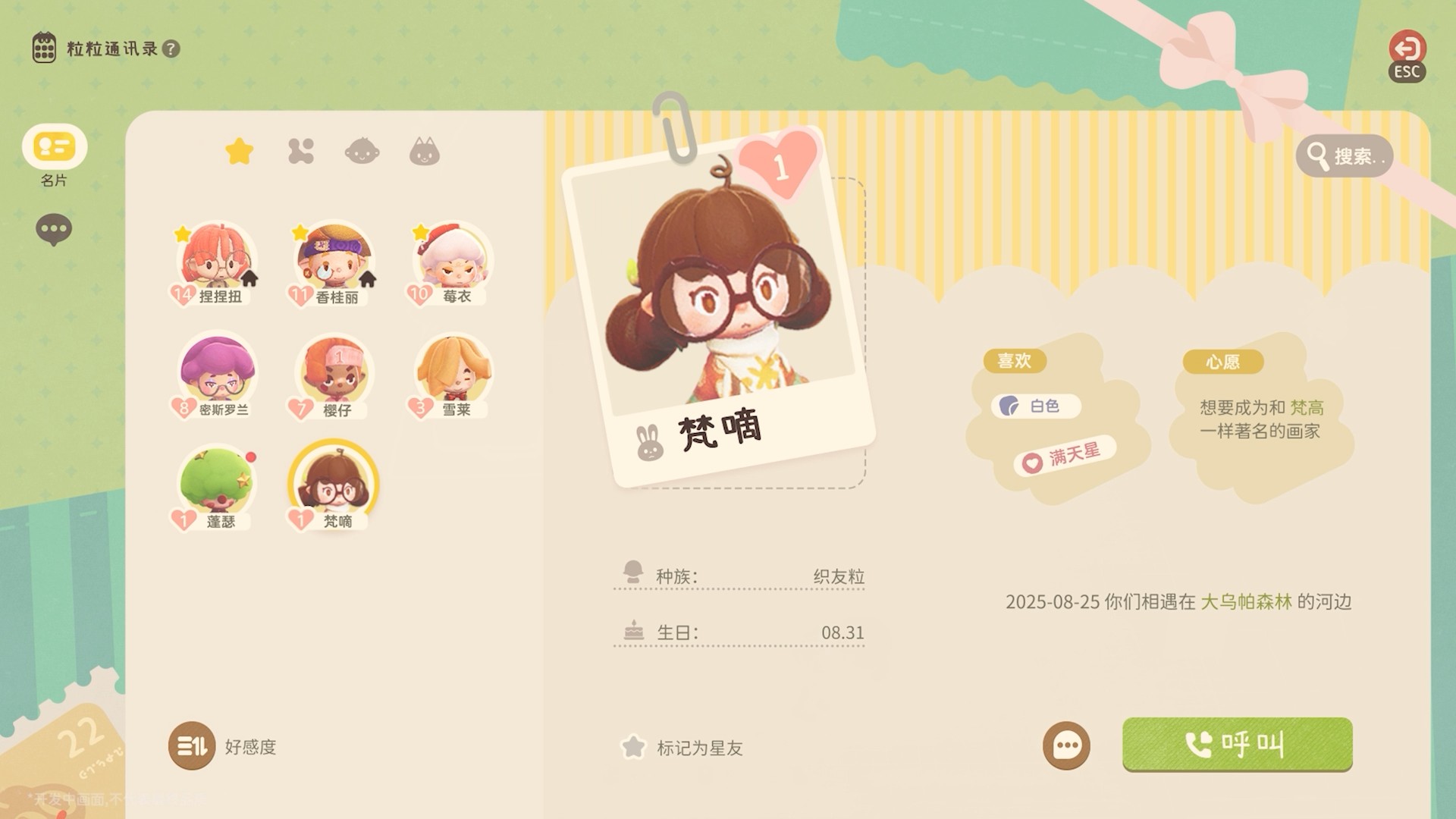 例如,他们会有自己珍藏的物品。当你们之间的好感度提升到一定等级、彼此更加熟悉之后,可以进行物品交换,作为情感的见证。