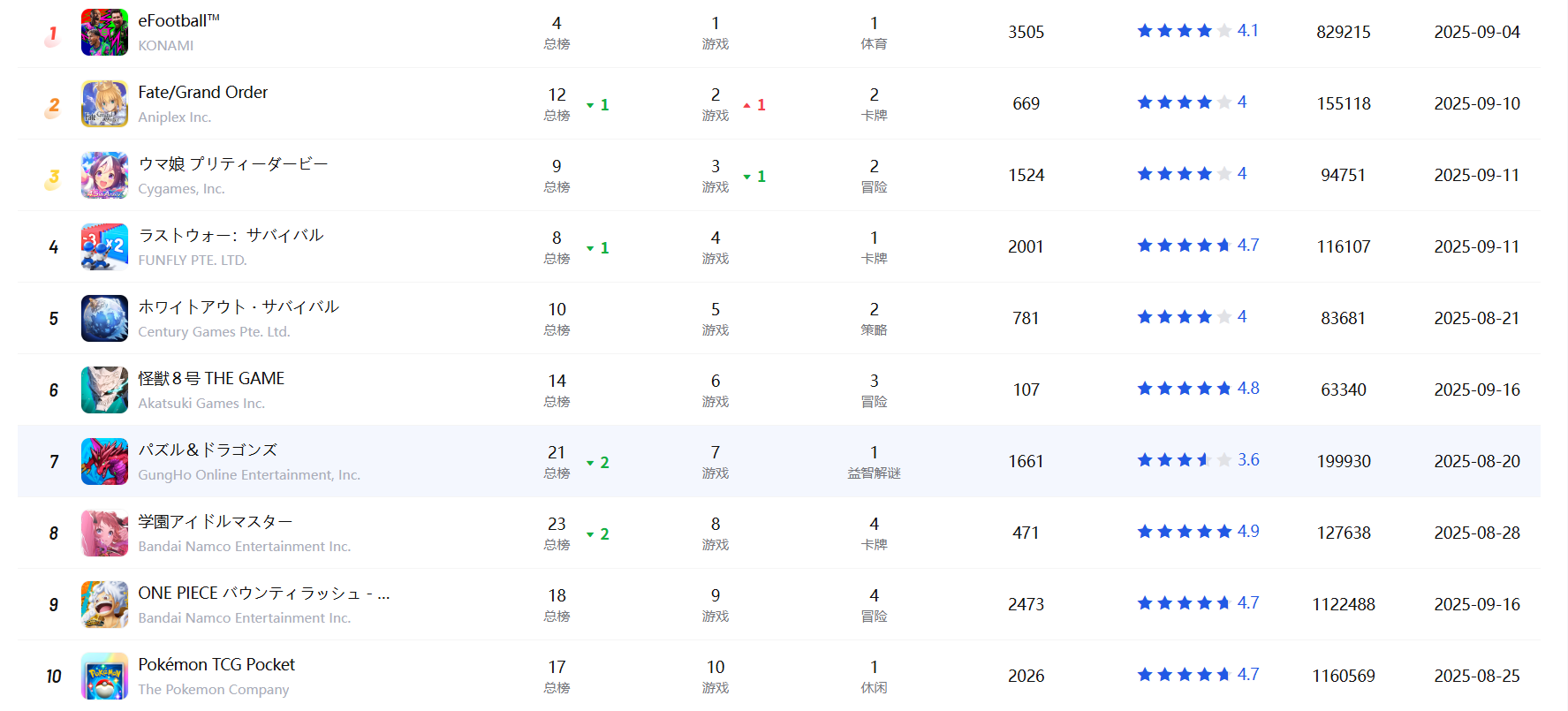 通过对iOS游戏畅销榜进行观察,不难发现在日本的二游赛道当中,一些大二游IP的影响力依旧巨大,比如《FGO》《偶像大师系列》《赛马娘》等;同时新晋二次元IP也轮番上阵,例如《怪兽8号》,总体上看日本本土的二次元IP依旧难以撼动。
