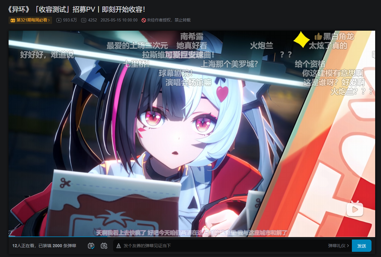 (《异环》最新的一支PV在B站已经累积了近600万播放)