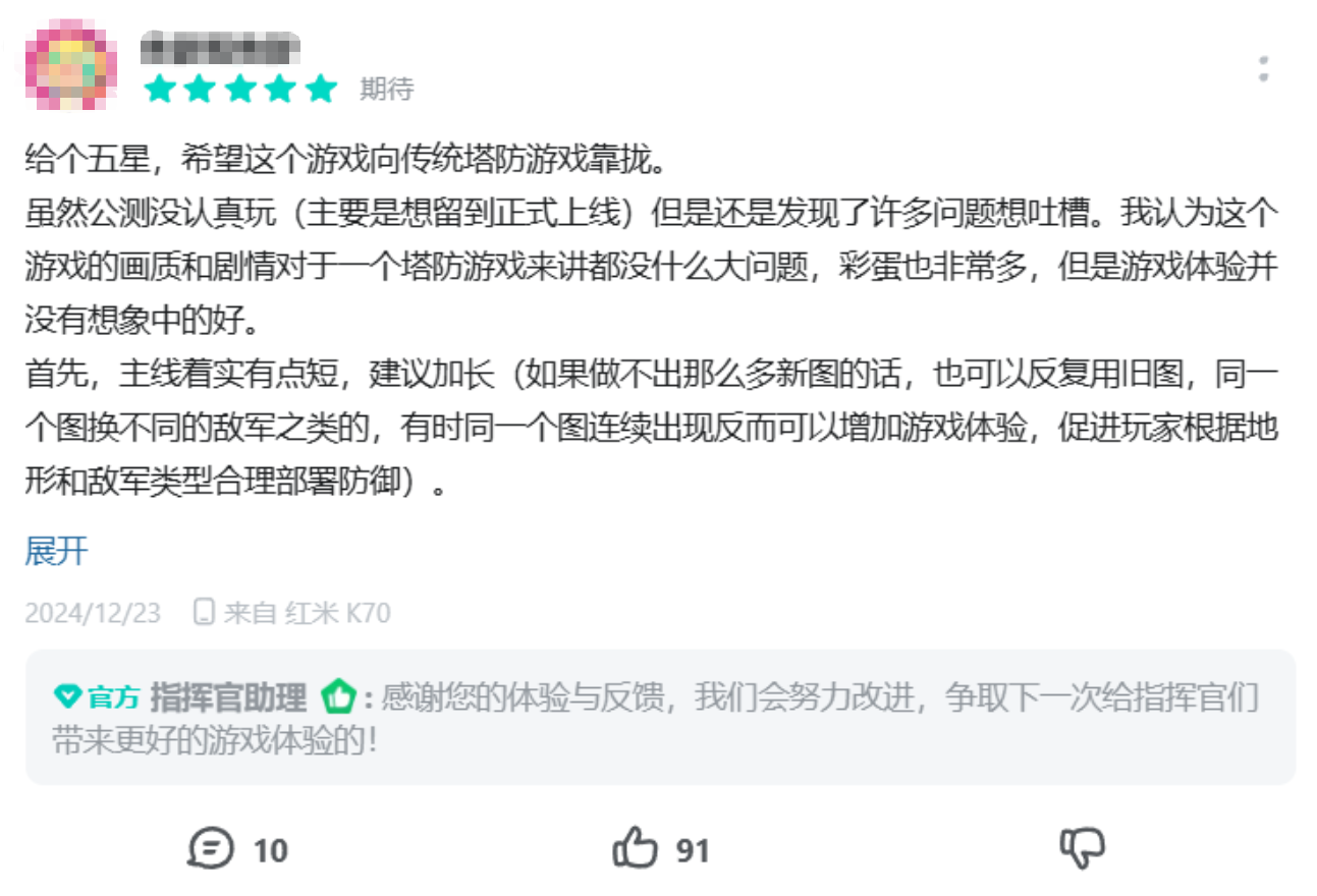 甚至在TapTap等社区的评论区,几乎每一条玩家针对游戏内容所作出的留言反馈,官方都予以回应,因此可以发现,《源序空间》公测版本的战斗、职业机制较之内测时期都有较为显著调整,主线剧情更是直接扩展至五个章节,真正落实了玩家们的反馈。也正是这种“听劝”的姿态,让他们得以深入融入到玩家群体当中,直接把握住了用户的真实偏好。