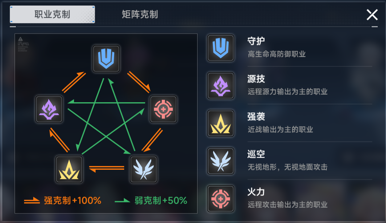 值得一提的是,《源序空间》在「矩阵」、「源启者」与敌人之间构筑了一套颇为严谨的克制关系,比如“源技”职业强克制“守护”职业,却易受“轰击”型矩阵反制。因此,玩家要在战斗中善于查看“刻印信息”找到敌人的特性与弱点,针对性地制定作战策略。