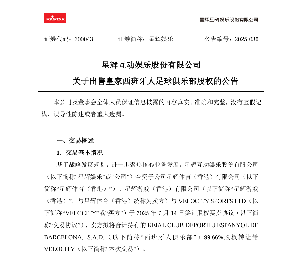 比方说,7月星辉就做出一项重大战略调整:出售西班牙人足球俱乐部,回笼资金全力支持AI游戏、AI玩具研发创新,以及游戏业务的云游戏平台建设和海外市场拓展。