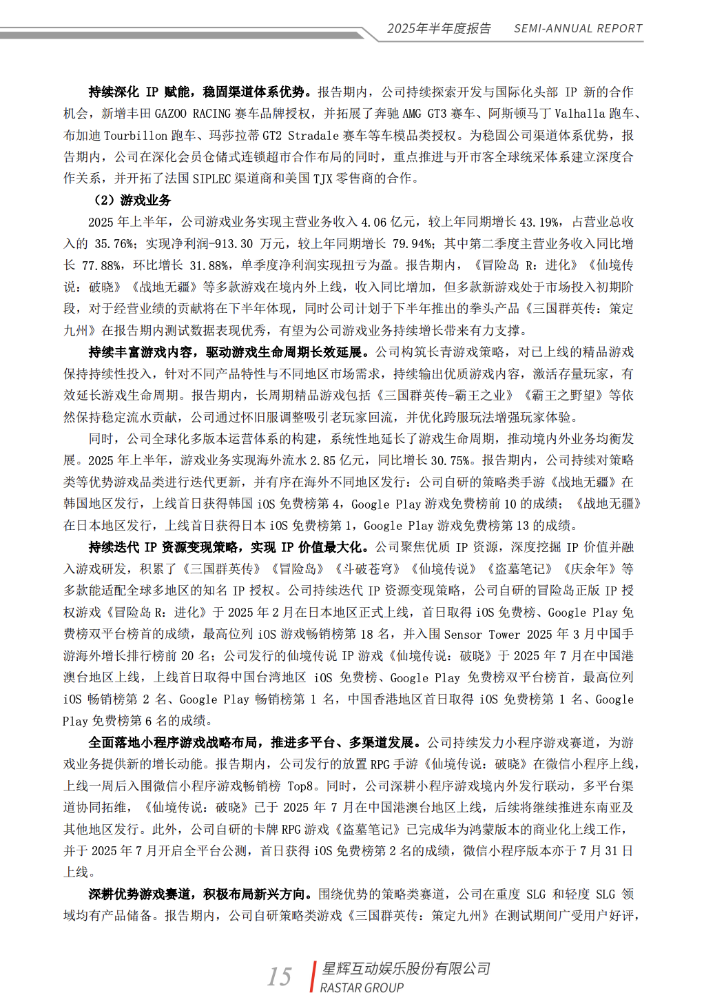 2025年上半年,星辉的游戏业务就已经有了较大幅度的增长——公司游戏业务实现主营业务收入4.06亿元,较上年同期增长43.19%;如果只看游戏业务净利润,星辉当期更是实现79.94%的大涨。