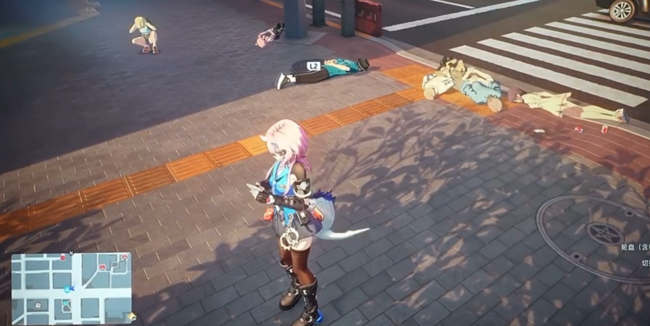 慵懒自在的塔菲则完美诠释了“随性”二字。切换到她时,毫不意外地发现她并非在忙于工作,而是悠闲地蹲在路边拿石子逗弄小狗,嘴里嘟囔着“我也得去干点正事儿了”,然后才交予玩家掌控。