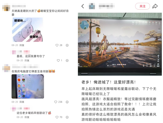 《无限暖暖》同样是内容深耕的思路。1.9版本「音乐季」,游戏开放了自由度拉满的家园系统,并官宣与《星露谷物语》的联动,双方玩家都对此兴趣高涨,不少“老乡”(星露谷玩家的自称)因为这次合作开始关注《无限暖暖》,而暖暖玩家也对这个充满种田气息的独立游戏充满好奇。