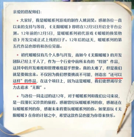 (姚润昊在《无限暖暖》1.2版本前瞻节目中也表达了类似的观点)