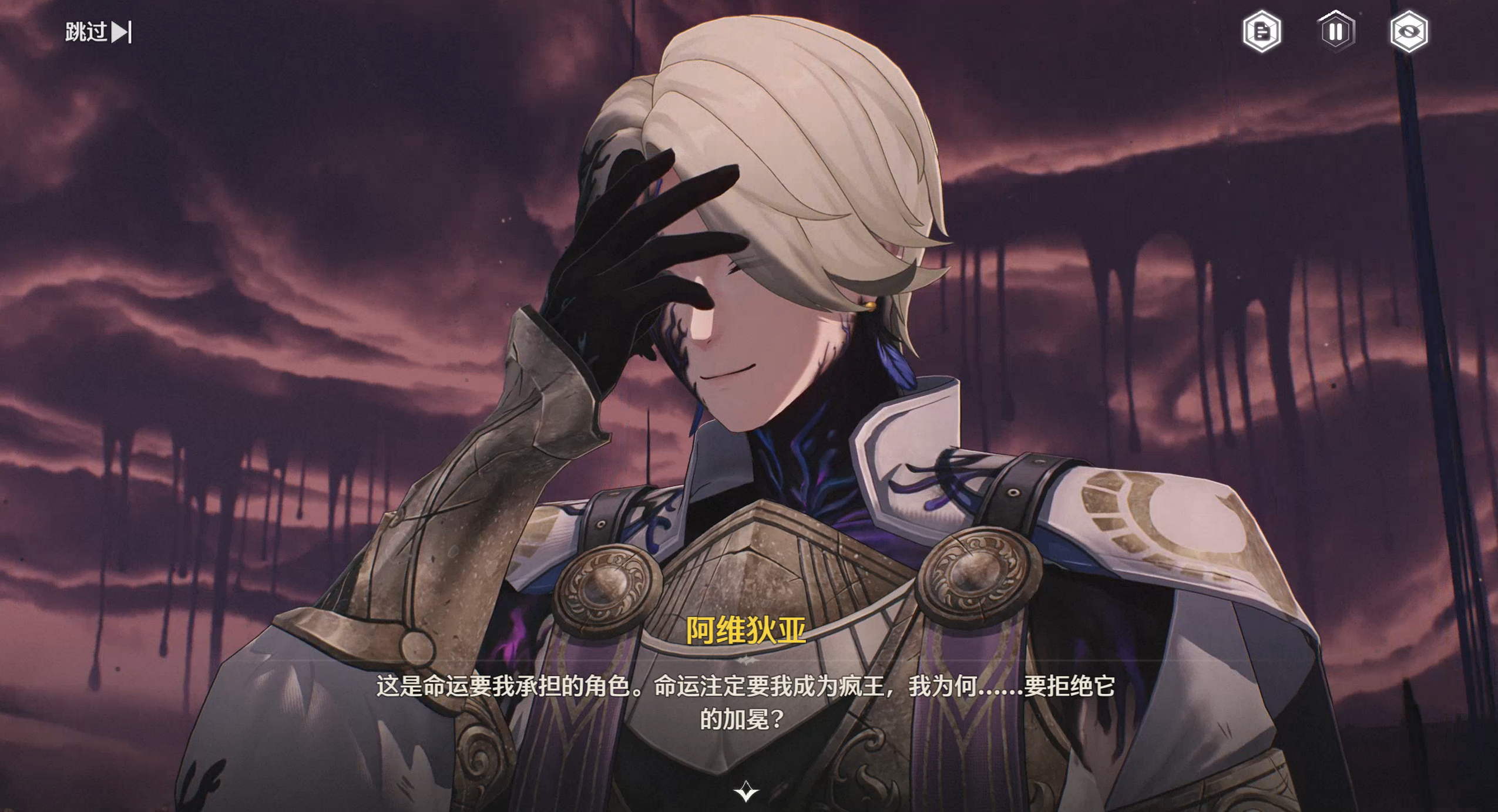 除了漂泊者的塑造,还有一位配角的悲剧性色彩在2.7版本达到了顶峰,那就是阿维狄亚。伪造的身世似乎注定了他不会有好结局:他是被鸣式创造出来对抗岁主的“产物”,过去的记忆与执念皆为虚构。