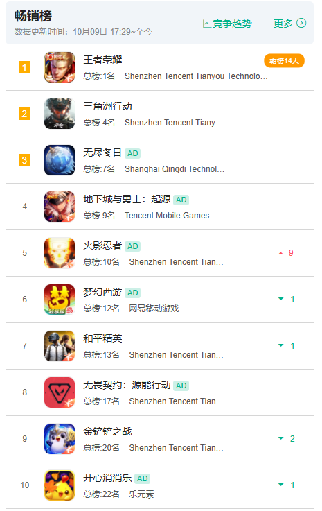 腾讯自身这边虽说只处在榜单第10的位置,但是从游戏业务的角度来看是相当乐观的。在当下的市场表现下,腾讯证明了自己就是游戏行业内最稳定的“长青产品制造机”。