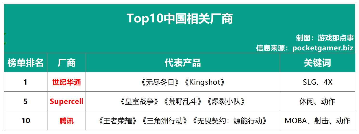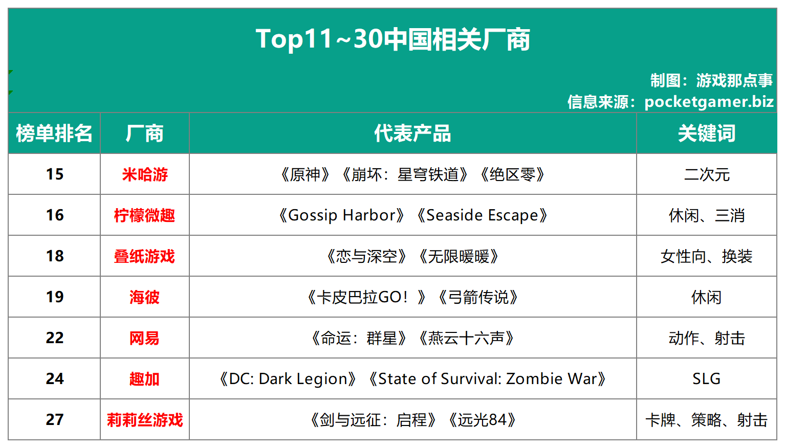 在遍览这份榜单之后,你会发现榜单上和中国厂商相关的内容还远远不止这些,还有很多由中国厂商所投资的海外厂商,或者由中国厂商负责开发以及发行的合作产品处在榜单当中,中国厂商在这份榜单里的身影还有更多。