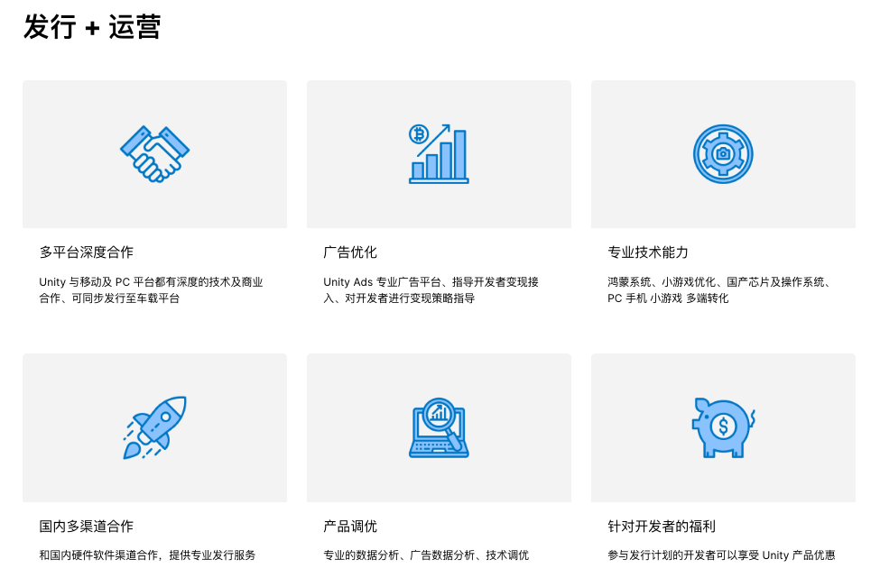 据Unity中国官方披露的数据,目前团结引擎注册用户突破了40万,基于团结引擎构建的项目数量超过 50 万;他们初次尝试的发行业务“千帆计划”也有超过100款产品上线,而且不同于传统的渠道对接模式,Unity中国构建了包含技术优化、数据分析、精准投放、版本迭代的全生命周期支持体系。