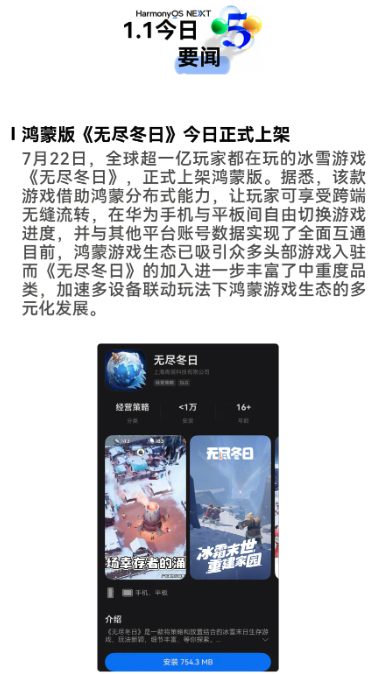 《无尽冬日》鸿蒙版也在今年7月正式上线