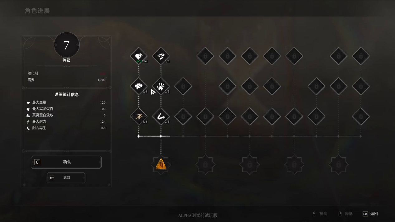 击杀敌人后,玩家可获得“催化剂”作为成长资源,之后可以花费资源在存档点“冥灯”处提升生命值、强化招架效果等基础属性。