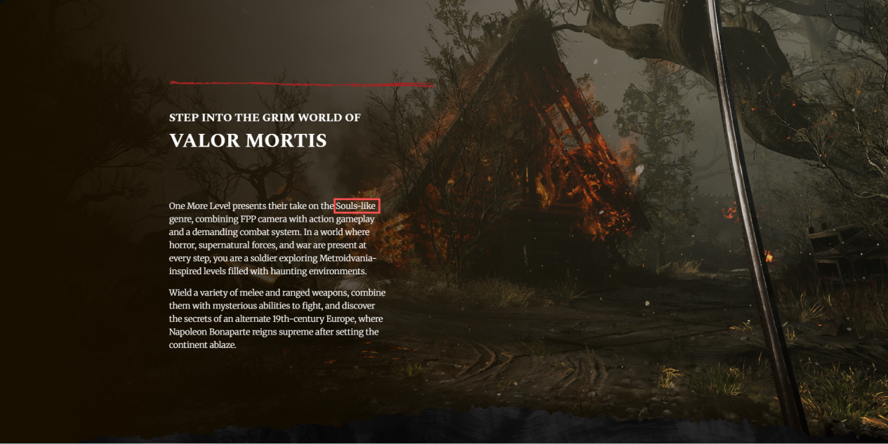 在今年8月的科隆游戏展上,《幽灵行者》开发商One More Level正式公布了新作《不朽遗志》(Valor Mortis),并将其定义为一款“第一人称魂类动作游戏”,这一另类组合随即在玩家社群中引发广泛讨论。