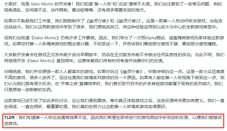 (Reddit原文,标题为《We want to hear your thoughts about our first-person soulslike!》)