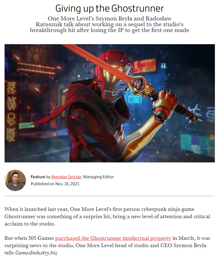2020年《幽灵行者》Demo版发布后,其出色品质又吸引了505 Games的联合发行支持。然而成名后,All In! Games在One More Level工作室未充分知情的情况下将IP主权转予505 Games,但他们之间并没有因此产生矛盾。