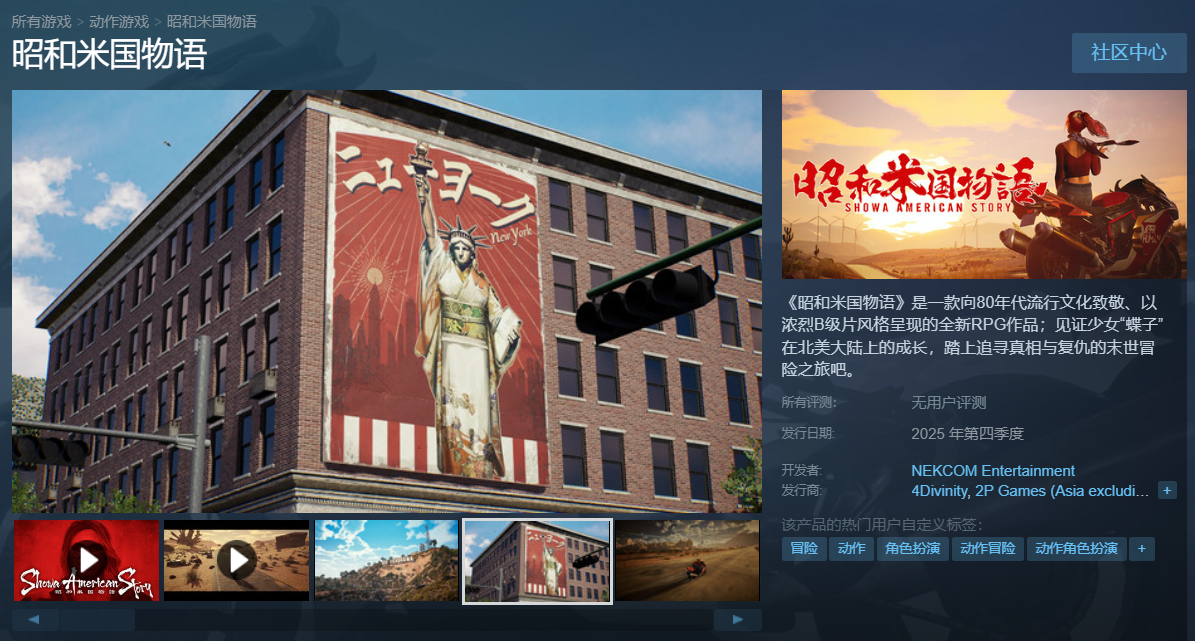 最后,预计今年内推出的《昭和米国物语》,可谓是全年备受期待的重头戏。尽管开发商铃空游戏已在2024年底宣布定档2025年,但自早期释出的三支预告PV后,今年至今便再无进一步的官方情报,不免让玩家猜测是否已经跳票。